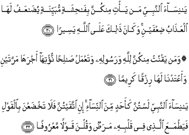The Qur'an indicates that the wives of Rasulullahﷺ had to be role models in society (33:30-32).